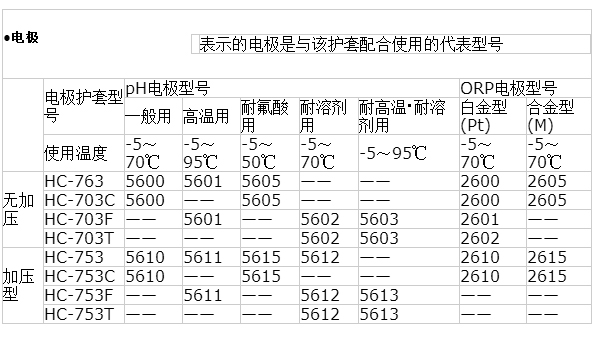 工業用浸沒型pH/ORP計可用于敞開式水路或池槽等。根據使用條件選擇合適的浸沒式護套與電極組合使用。此篇介紹的電極均為KCl補給式電極。流通式安裝請參見流通式pH/ORP計檢測器的相關規格資料。